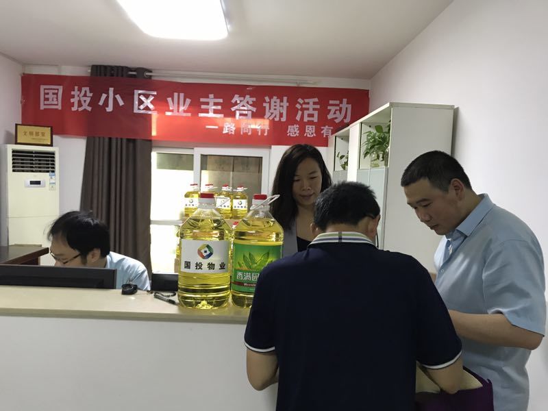 2017年6月5日,為答謝國興小區(qū)業(yè)主對物業(yè)工作的大力支持,同時為了激勵2017年物業(yè)費的繳納,國投物業(yè)特舉辦了一場“繳物業(yè)費、發(fā)食用油”業(yè)主答謝活動。
