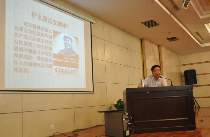 次日上午,特邀曾任延安市委黨校副校長的劉光勝教授做了《延安精神及時代價值》主題黨課教育。劉教授從延安精神形成和發(fā)展的歷史條件、形成過程、基本理論,以及在新的歷史時期如何繼承、發(fā)揚延安精神四個方面進行了系統(tǒng)性論述,并著重講解了在新的歷史時期,如何堅持堅定正確的政治方向;如何堅持解放思想、實事求是的思想路線;如何堅持全心全意為人民服務的根本宗旨;如何堅持自力更生、艱苦奮斗的創(chuàng)業(yè)精神,進而更好地繼承和發(fā)揚延安精神。