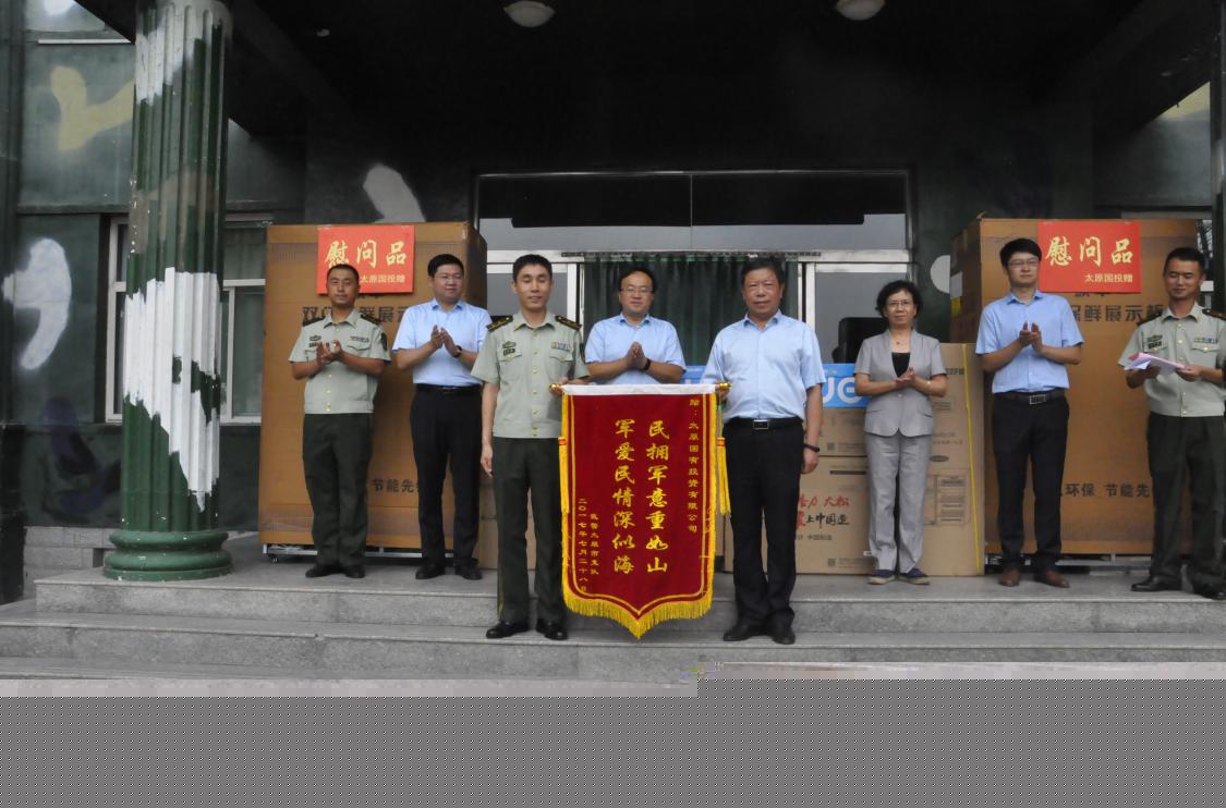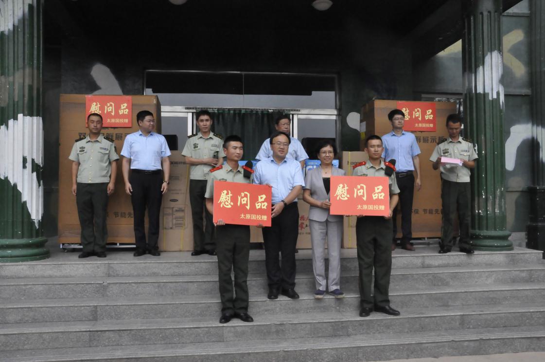 在“八一”建軍節(jié)來臨之際,為慶祝中國人民解放軍建軍90周年,7月29日,太原國投集團來到武警太原市支隊一大隊,送上了節(jié)日的問候和祝福,公司黨委書記馮澤亭、副董事長、副總經(jīng)理文劍鋒、工會主席陳建梅、紀委書記楊柳、總經(jīng)理助理陳薪文參加了此次活動。