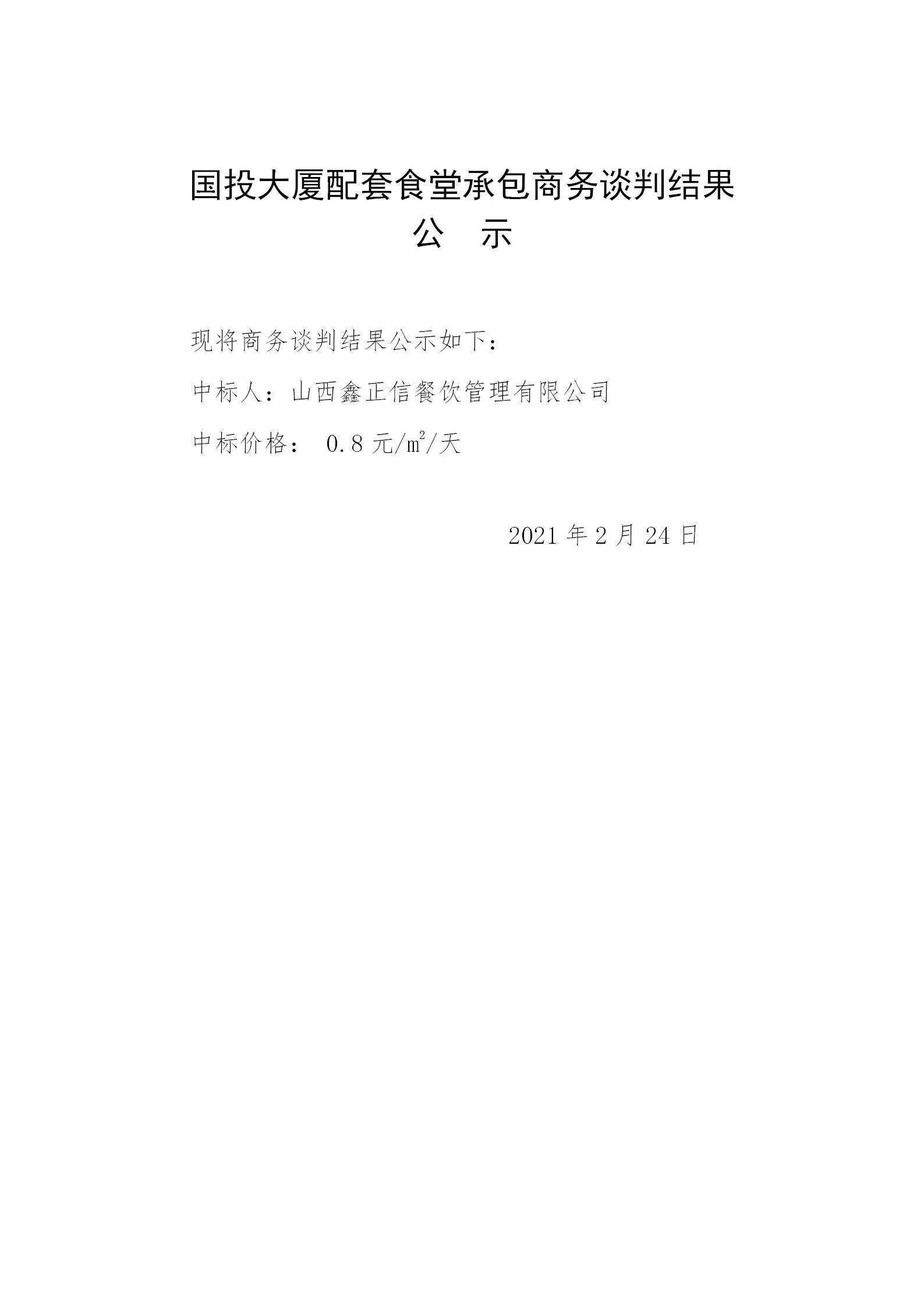 國投大廈配套食堂承包商務(wù)談判結(jié)果公示