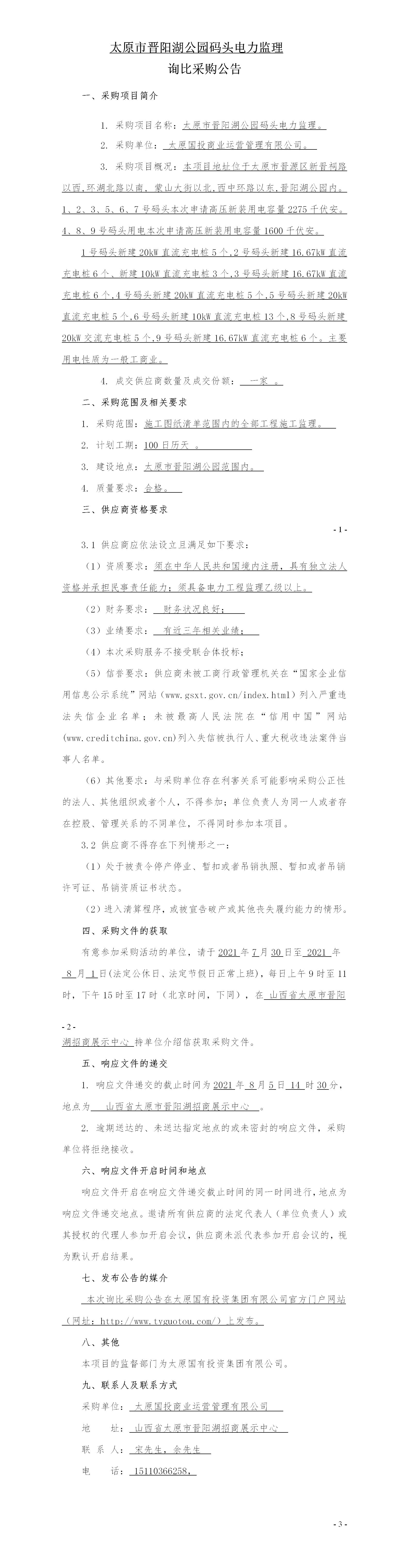 太原市晉陽(yáng)湖公園碼頭電力監(jiān)理采購(gòu)公告