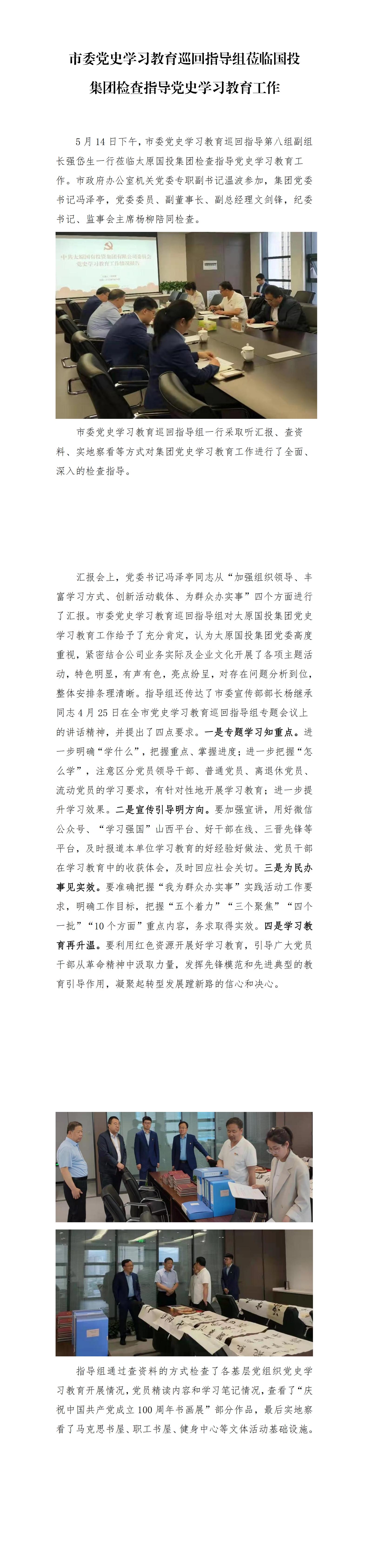 市委黨史學(xué)習(xí)教育巡回指導(dǎo)組蒞臨國(guó)投集團(tuán)檢查指導(dǎo)黨史學(xué)習(xí)教育工作