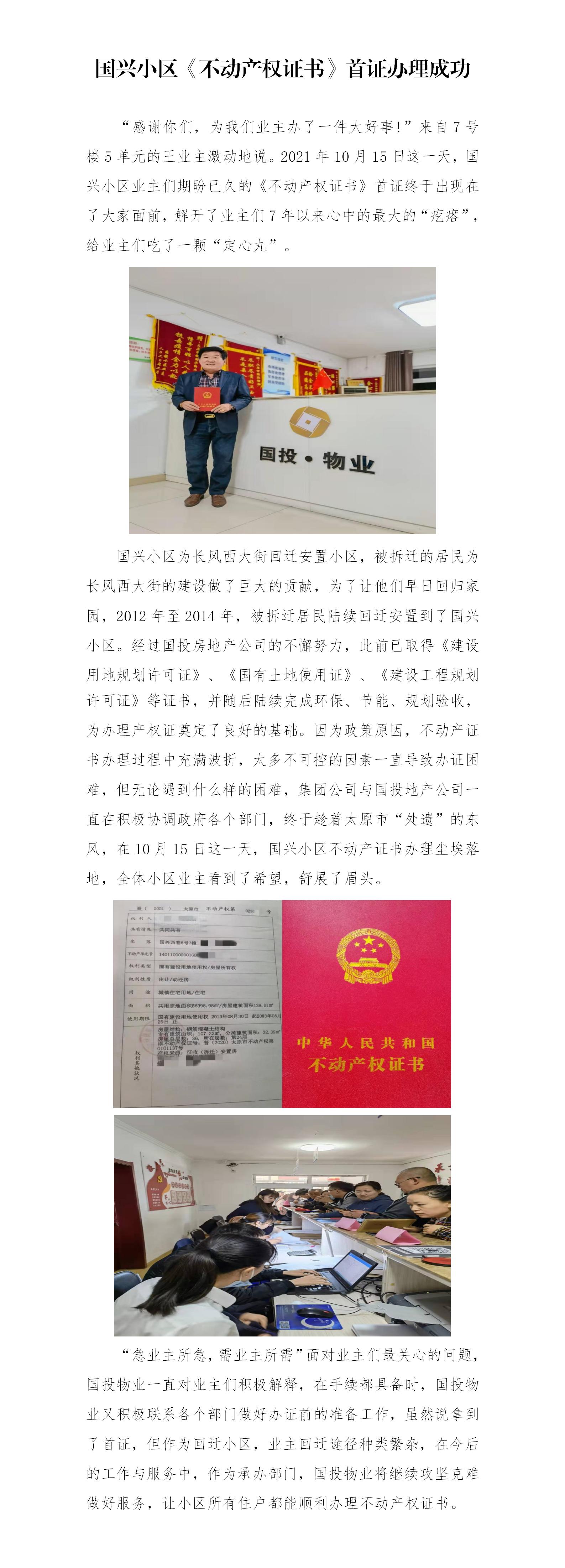 國興小區(qū)不動產(chǎn)權(quán)證書首證辦理成功