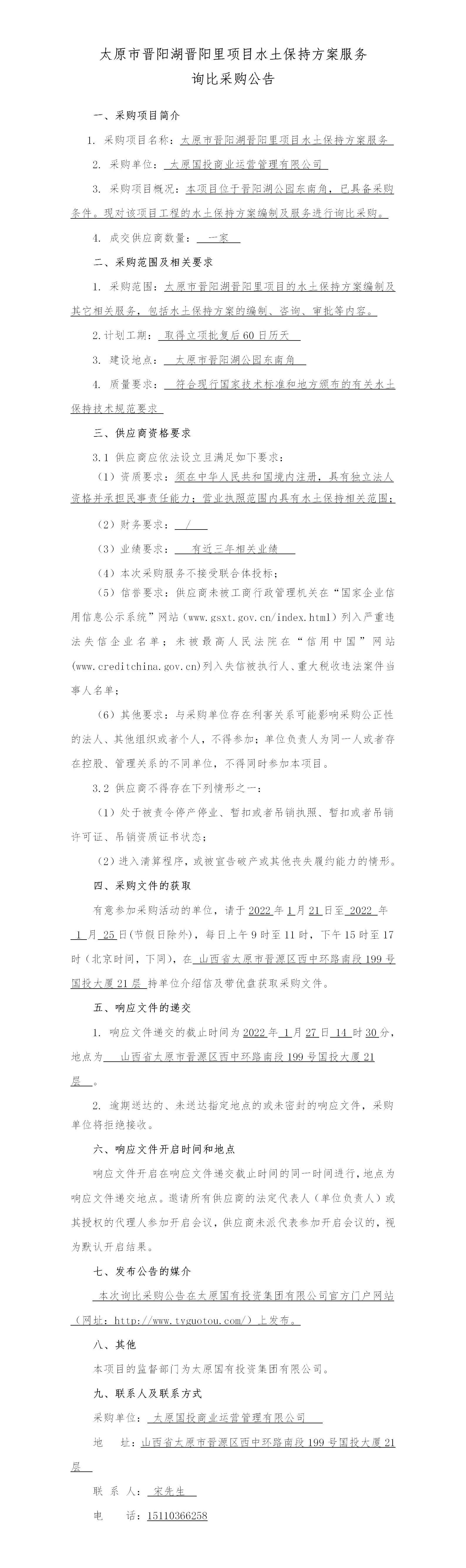 太原市晉陽(yáng)湖晉陽(yáng)里項(xiàng)目水土保持方案服務(wù)詢比采購(gòu)公告