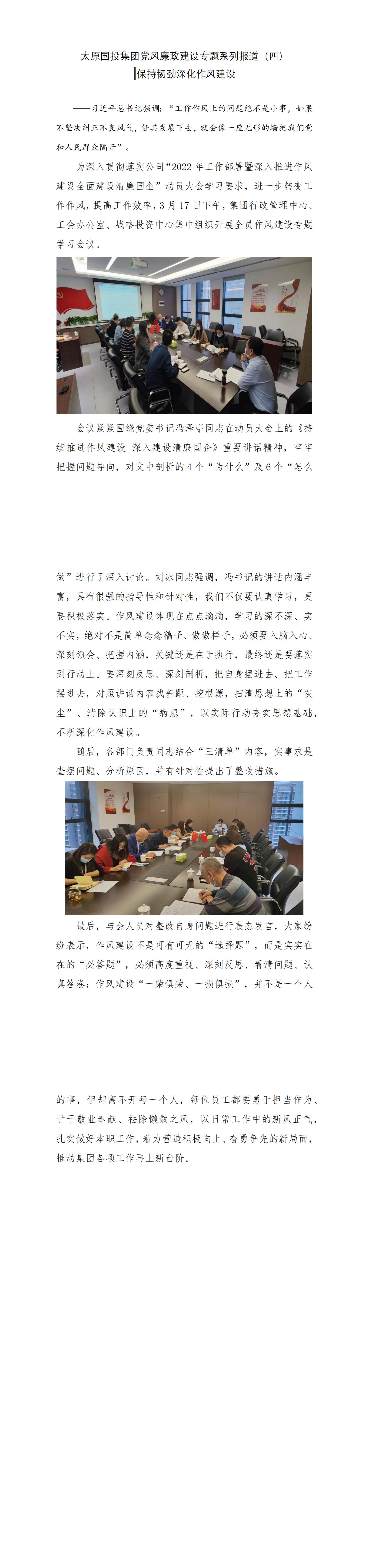 太原國(guó)投集團(tuán)黨風(fēng)廉政建設(shè)專題系列報(bào)道(四)保持韌勁深化作風(fēng)建設(shè)
