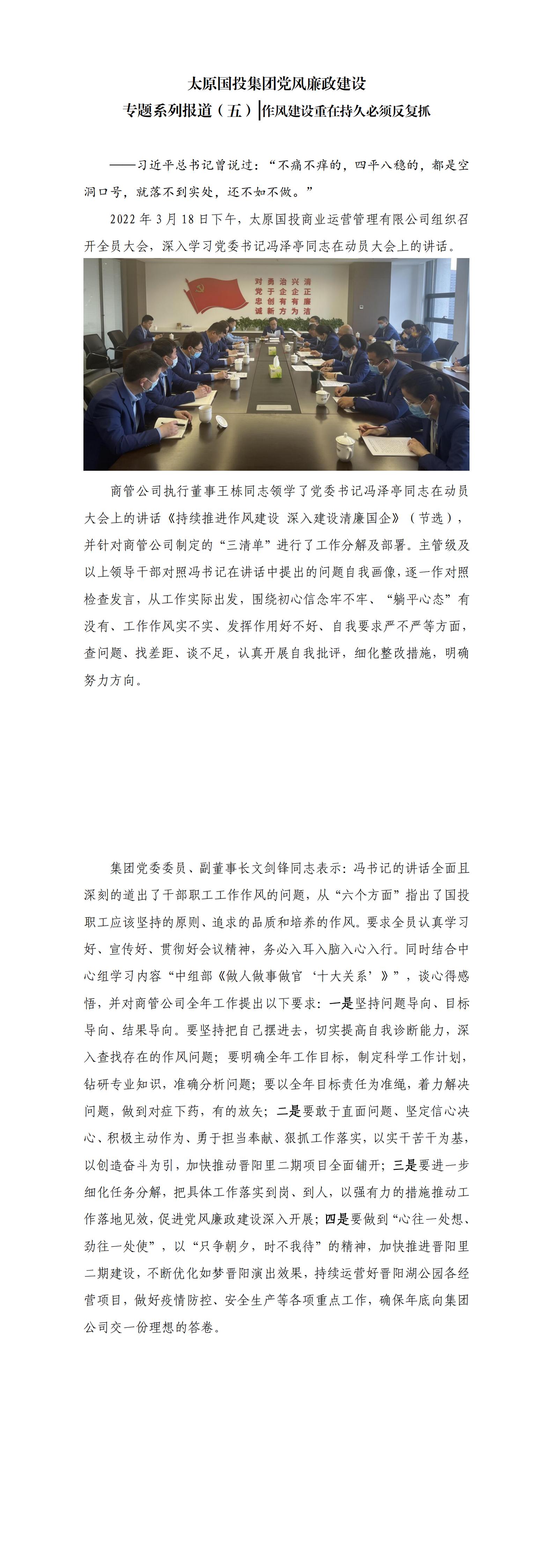 太原國投集團黨風廉政建設專題系列報道(五)作風建設重在持久必須反復抓