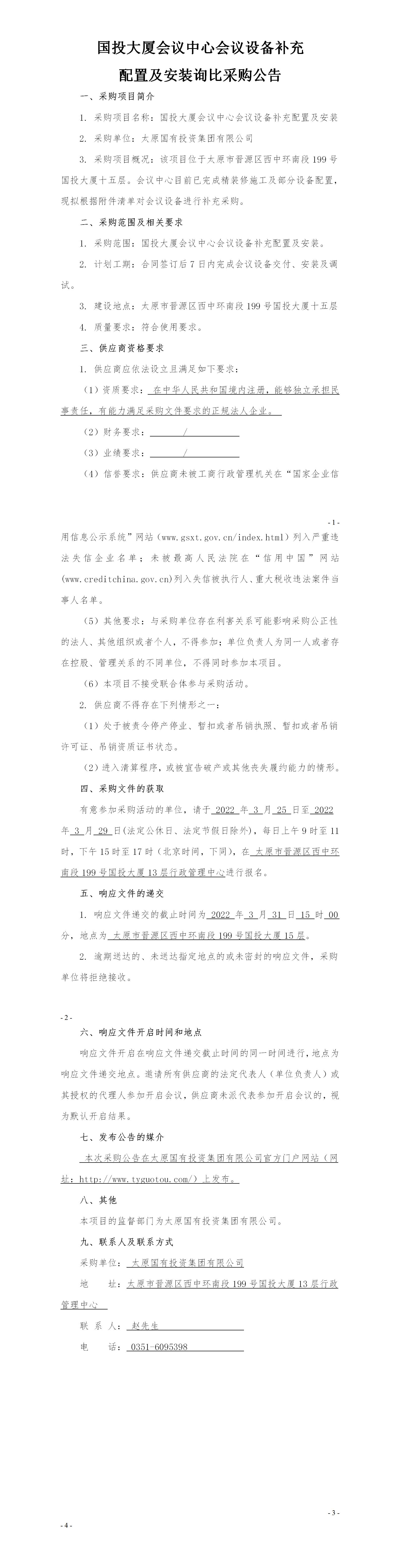 國(guó)投大廈會(huì)議中心會(huì)議設(shè)備補(bǔ)充配置及安裝詢(xún)比采購(gòu)公告