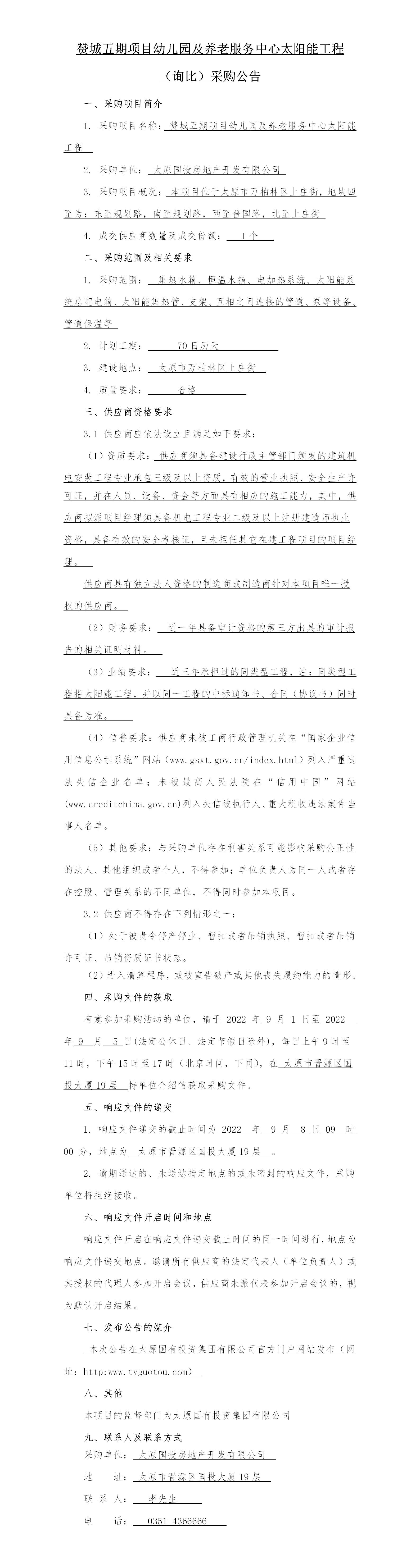 贊城五期項(xiàng)目幼兒園及養(yǎng)老服務(wù)中心太陽能工程詢比采購公告