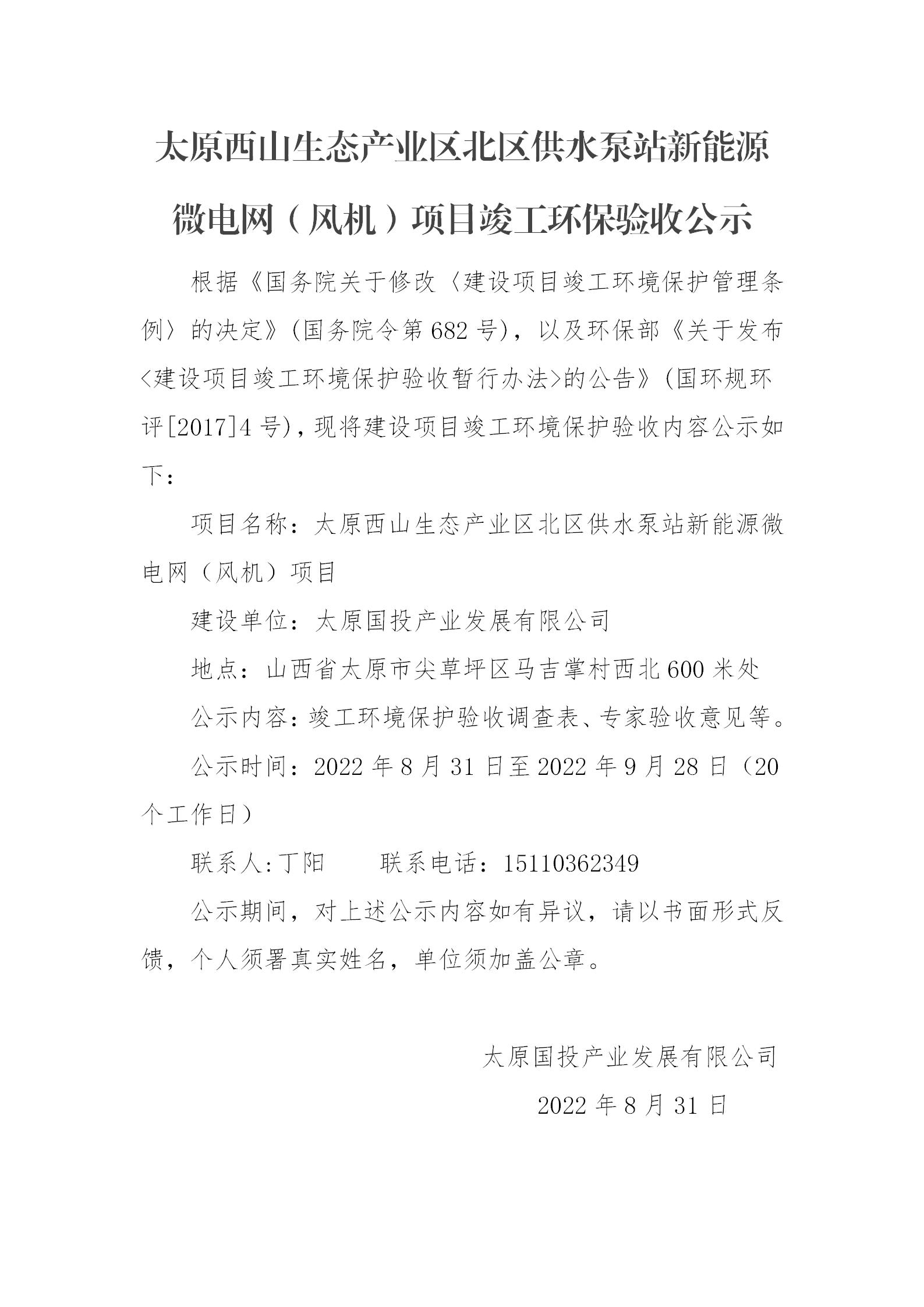 太原西山生態(tài)產(chǎn)業(yè)區(qū)北區(qū)供水泵站新能源微電網(wǎng)(風機)項目竣工環(huán)保驗收公示