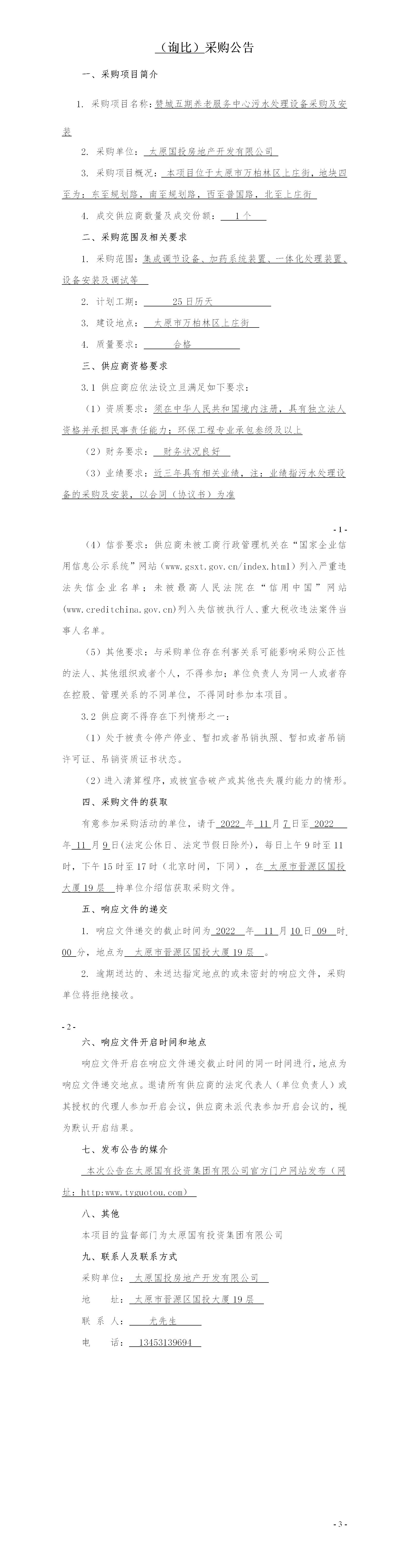 養(yǎng)老服務(wù)中心污水處理設(shè)備采購(gòu)及安裝詢(xún)比采購(gòu)公告
