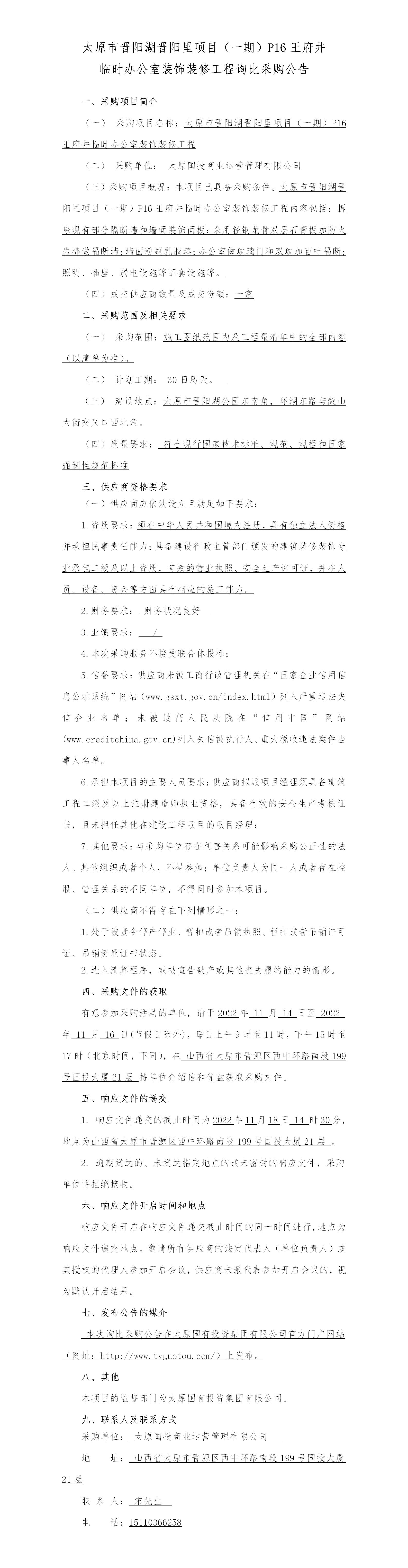 太原市晉陽湖晉陽里項(xiàng)目(一期)P16王府井 臨時辦公室裝飾裝修工程詢比采購公告