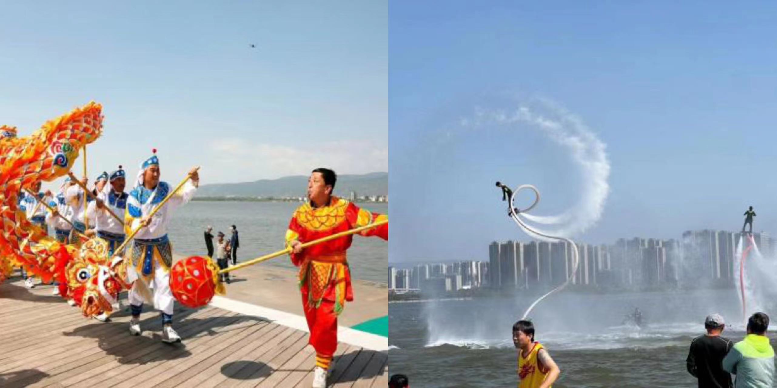 在碧波蕩漾的晉陽(yáng)湖,鑼鼓喧天,群龍熱舞,水中飛起的空中飛人似蛟龍出海,一系列的活動(dòng)吸引了無(wú)數(shù)游客前來(lái)觀賞,一同歡慶一年一度的中華民族傳統(tǒng)節(jié)日——端午節(jié)。