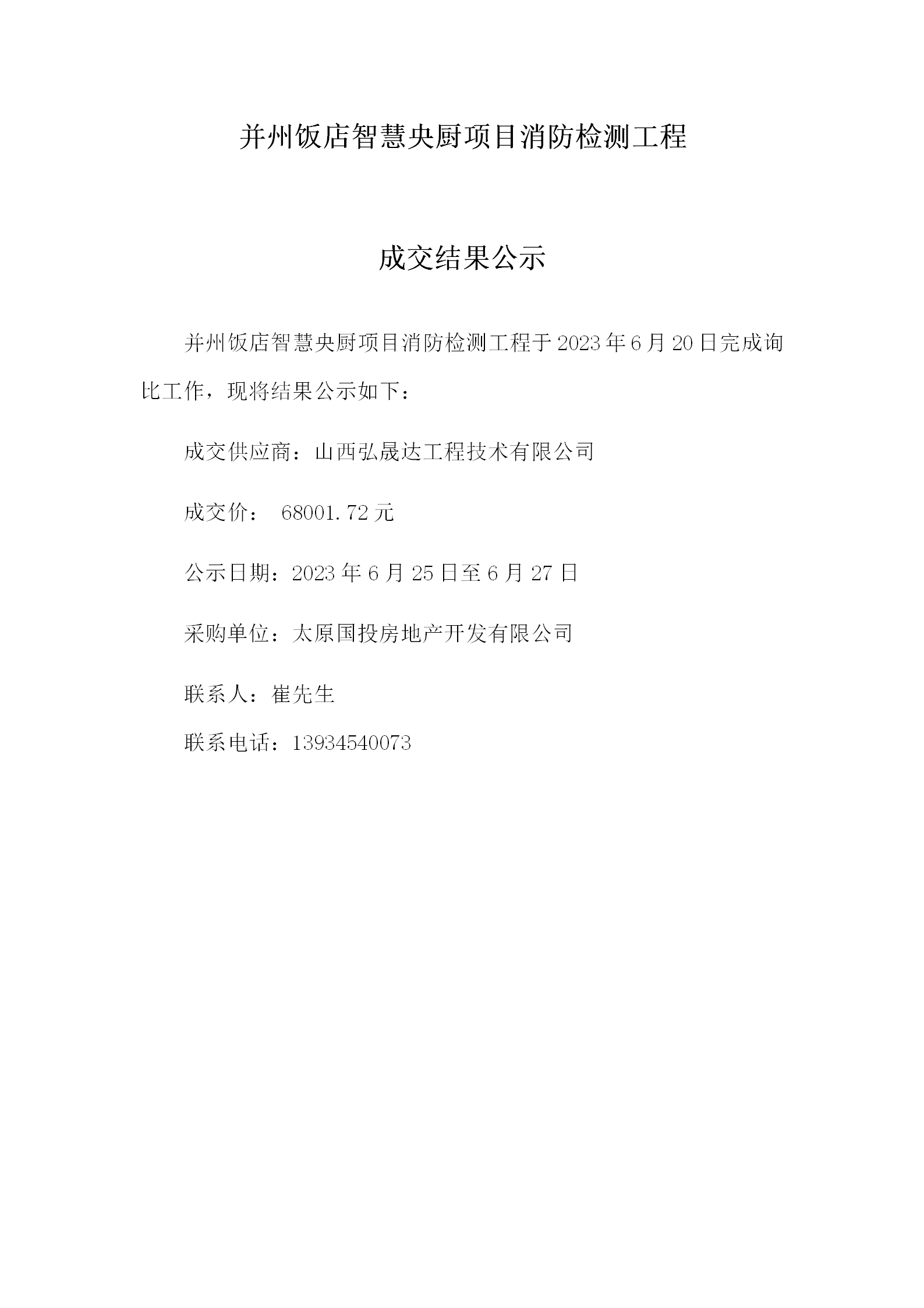 并州飯店智慧央廚項目消防檢測工程成交結(jié)果公示