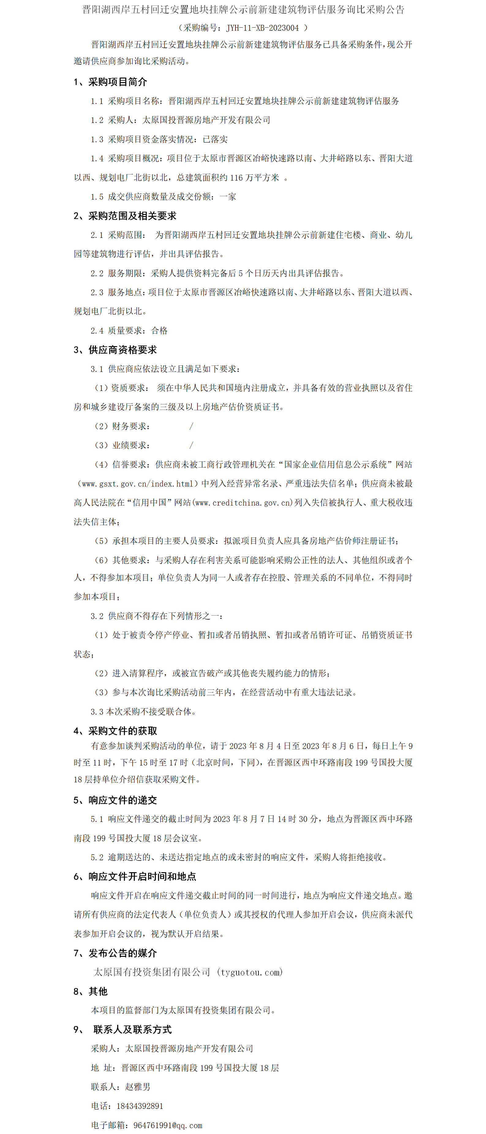 晉陽湖西岸五村回遷安置地塊掛牌公示前新建建筑物評估服務詢比公告