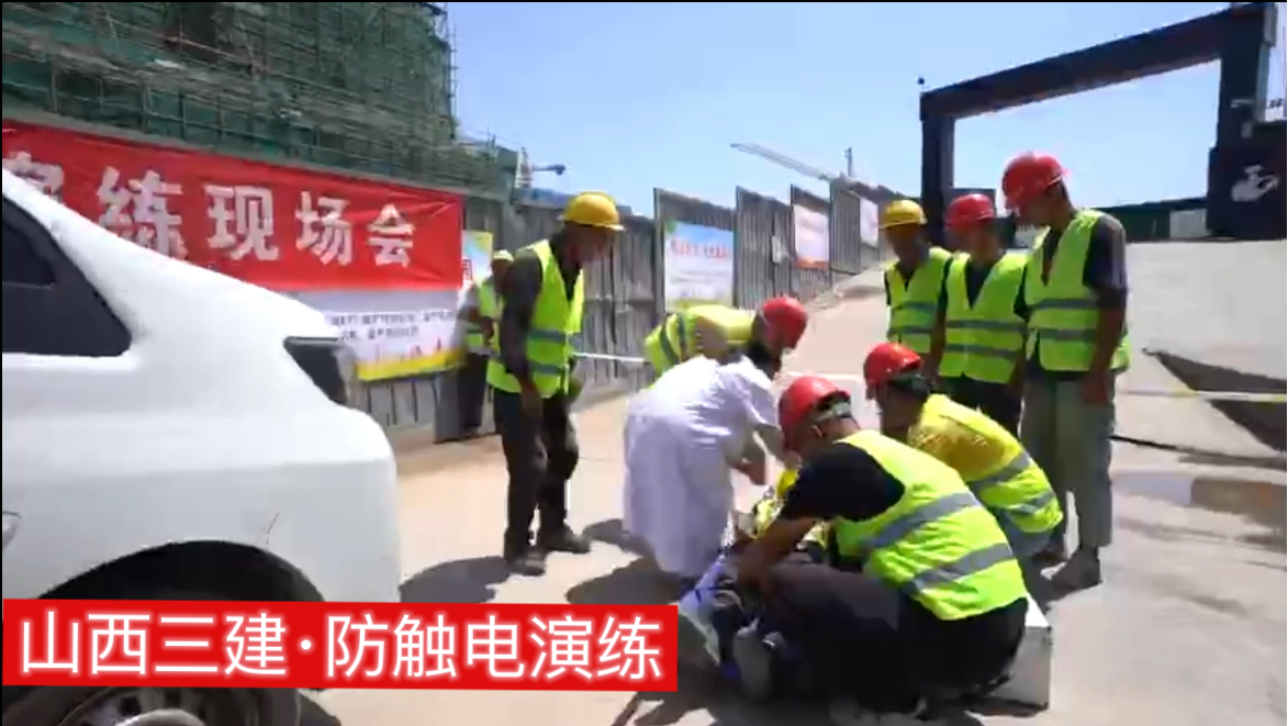 演練當(dāng)日,天降大雨,綜合應(yīng)急演練如期舉行。防觸電演練地點(diǎn)在山西三建施工現(xiàn)場(chǎng),一名零工打掃衛(wèi)生時(shí)發(fā)生觸電事故,隨即倒地?,F(xiàn)場(chǎng)工人發(fā)現(xiàn)后第一時(shí)間向項(xiàng)目經(jīng)理匯報(bào),項(xiàng)目部立即啟動(dòng)應(yīng)急預(yù)案、迅速展開(kāi)救援。各應(yīng)急小組成員以最短的時(shí)間和最快的速度趕赴現(xiàn)場(chǎng),實(shí)施現(xiàn)場(chǎng)救援。
