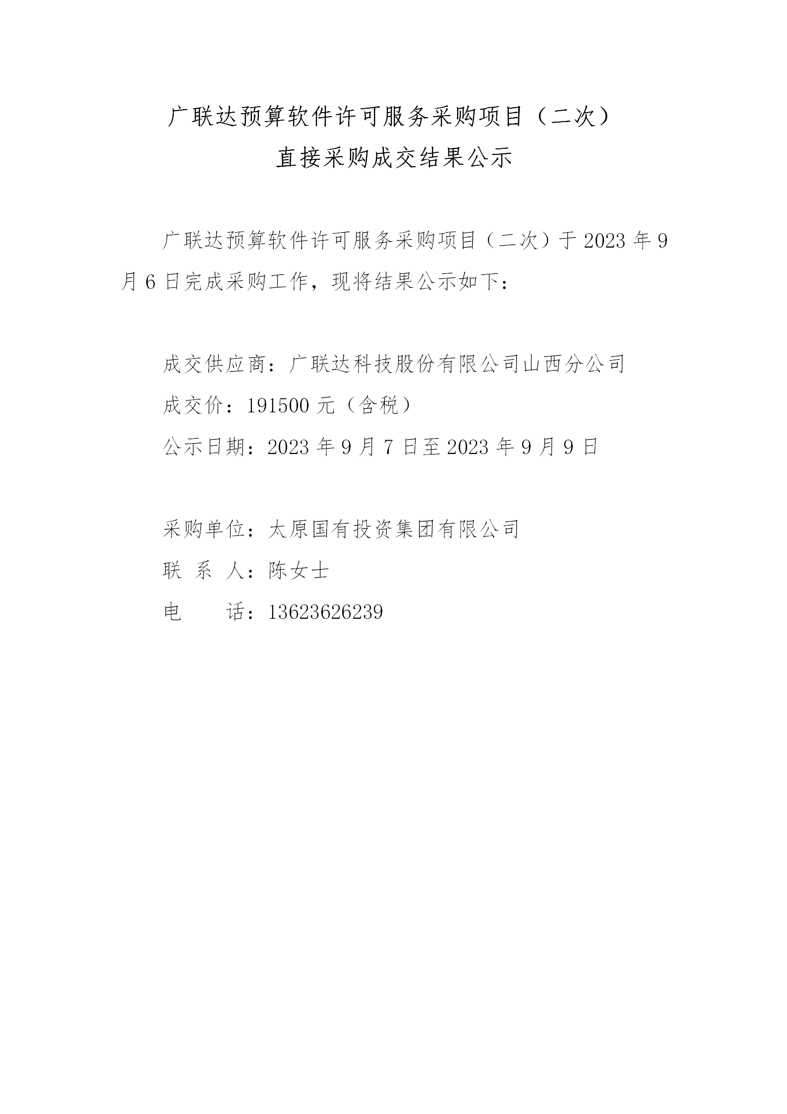 廣聯(lián)達預算軟件許可服務采購項目(二次)直接采購成交結(jié)果公示