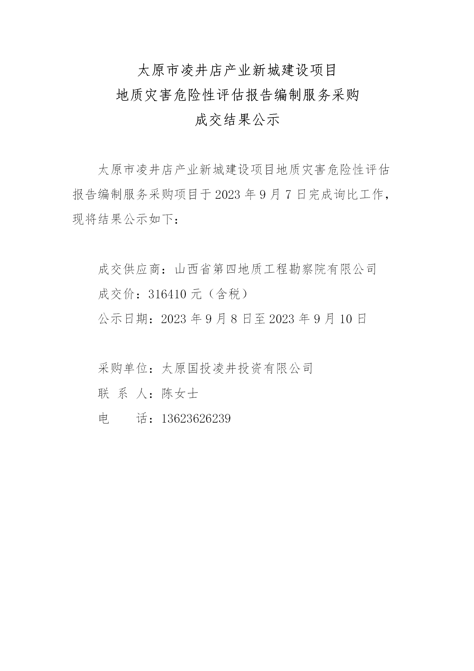 太原市凌井店產(chǎn)業(yè)新城建設(shè)項(xiàng)目地質(zhì)災(zāi)害危險(xiǎn)性評(píng)估報(bào)告編制服務(wù)采購(gòu)成交結(jié)果公示