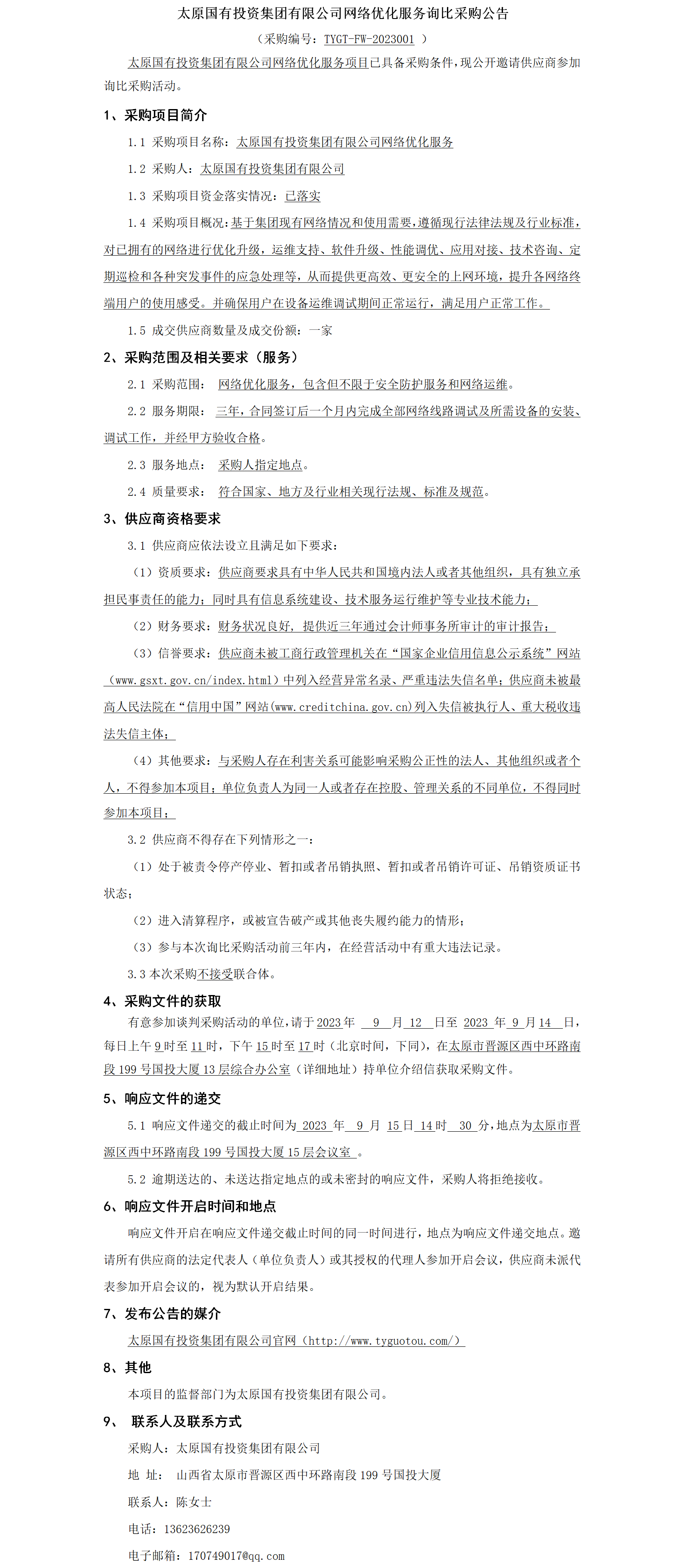網(wǎng)絡(luò)優(yōu)化服務(wù)詢比采購(gòu)公告