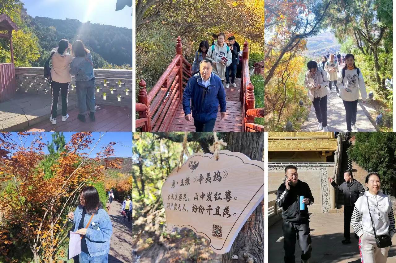 上午9點集合完畢后,大家開始沿著預(yù)定路線登山,置身于壯麗的自然景色中,一路上三兩成群結(jié)伴而行,神采奕奕,邁著穩(wěn)健的步伐,沿山路而上,每片金葉都滲透著秋的色彩、秋得味道,讓人心曠神怡。登山過程中,大家情緒高昂,歡聲笑語,有人忙著拍照留影,有人則撿拾了不同顏色的葉子,想做成手工畫送給家里的老人。經(jīng)過1小時的徒步,大家順利登上山頂,站在山頂,一覽眾山小,風(fēng)景無限好。大家呼吸著新鮮的空氣,欣賞著宜人的風(fēng)光,渾身的疲憊和心中的壓力瞬間都煙消云散。
