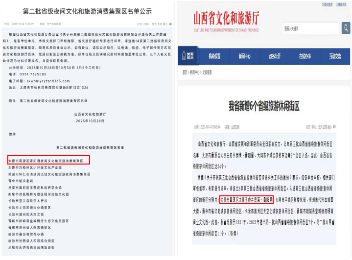 根據(jù)山西省文化和旅游廳辦公室《關于開展第二批省級夜間文化和旅游消費集聚區(qū)評選有關工作的通知》、《關于開展第三批山西省省級旅游休閑街區(qū)評選有關工作的通知》要求,經(jīng)市級文旅部門審核推薦、省文旅廳組織專家進行評審,我公司申報的《太原市晉源區(qū)晉陽湖夜間文化和旅游消費集聚區(qū)》、《太原市晉源區(qū)太原王府井奧萊?晉陽里》成功獲選。