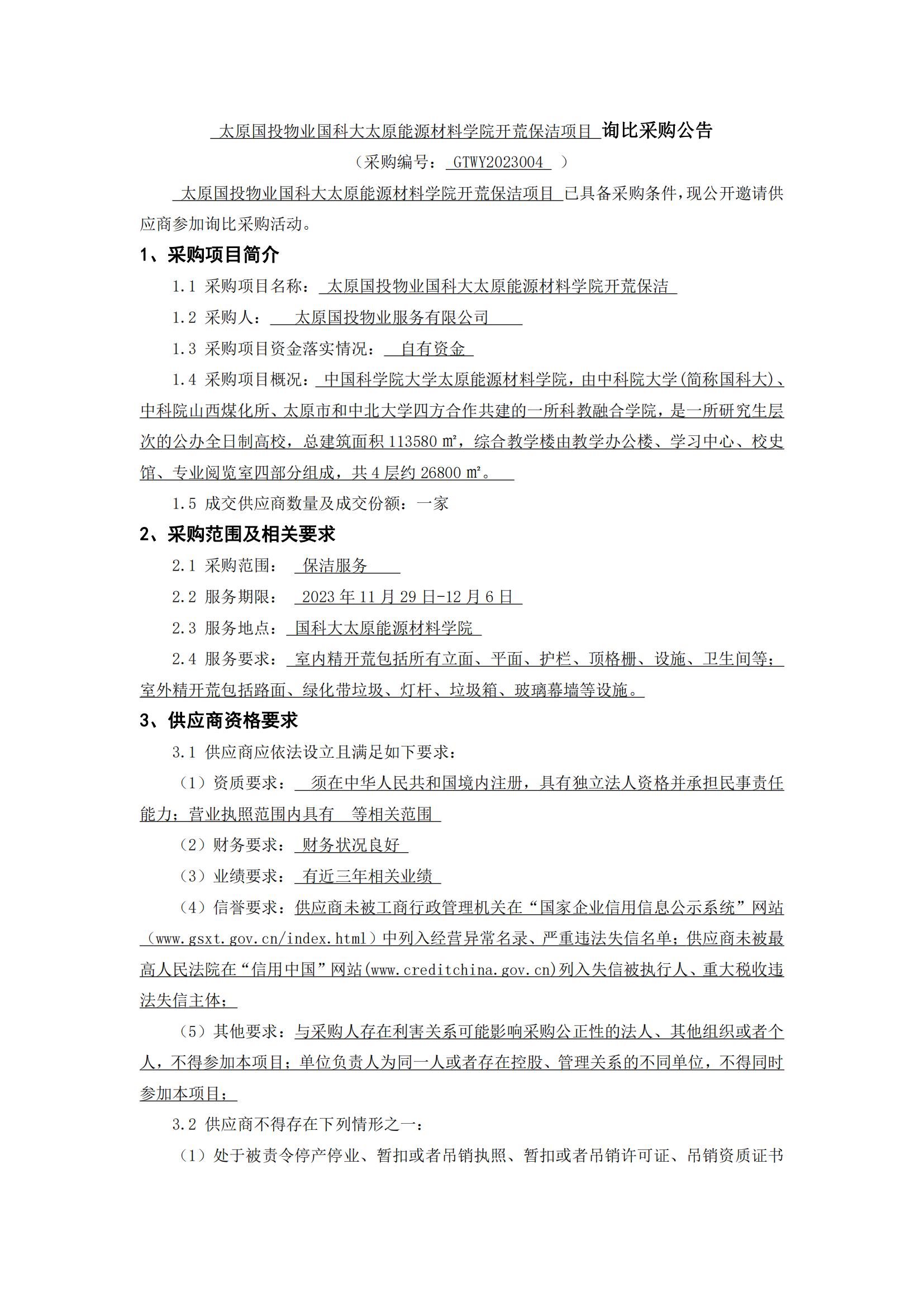 太原國(guó)投物業(yè)國(guó)科大太原能源材料學(xué)院開荒保潔項(xiàng)目詢比采購(gòu)公告