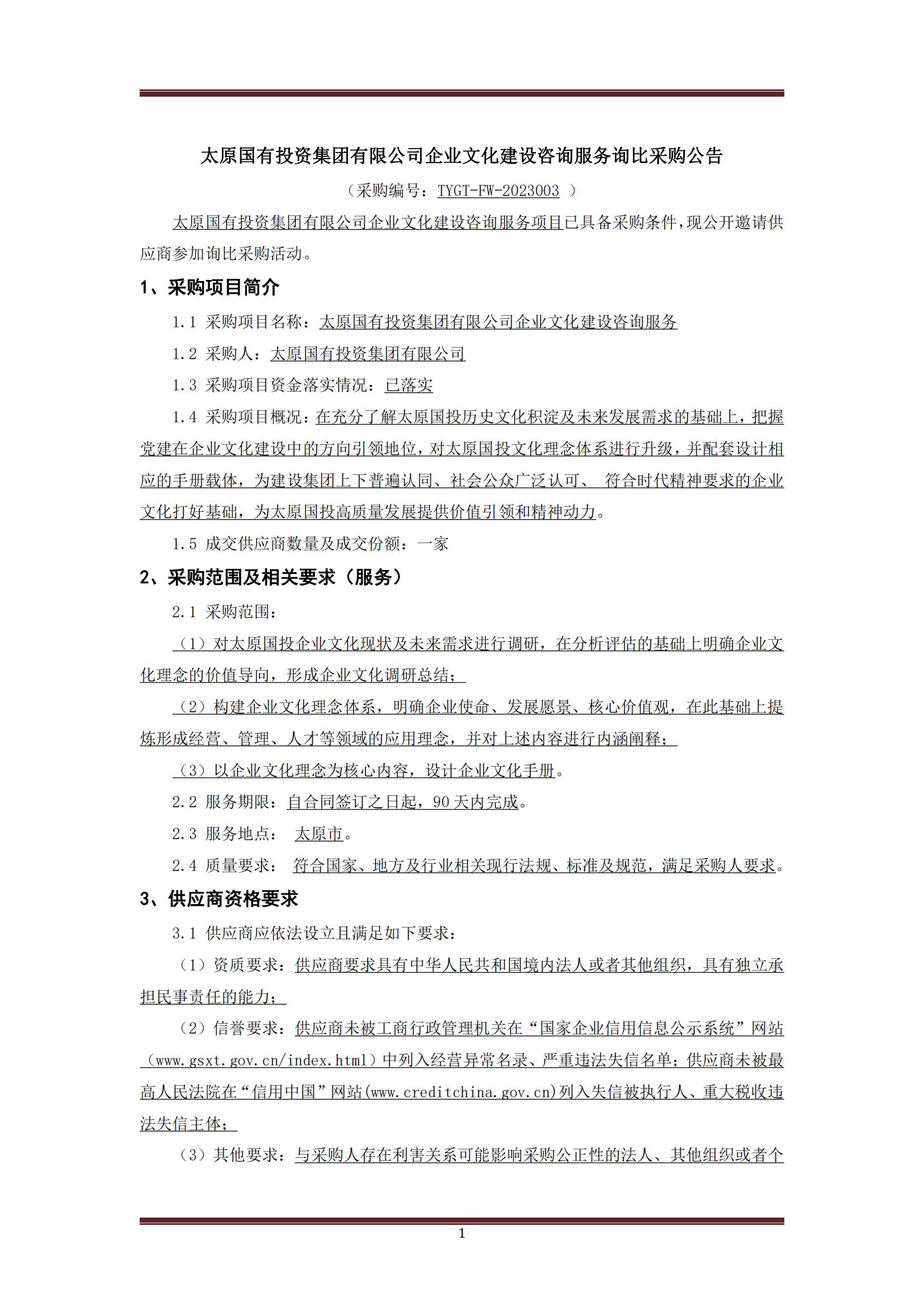 太原國有投資集團(tuán)有限公司企業(yè)文化建設(shè)咨詢服務(wù)詢比采購公告