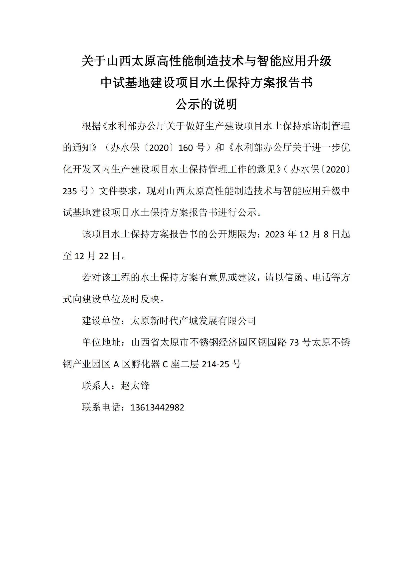 山西太原高性能制造技術(shù)與智能應(yīng)用升級 中試基地建設(shè)項(xiàng)目水土保持方案報(bào)告書公示