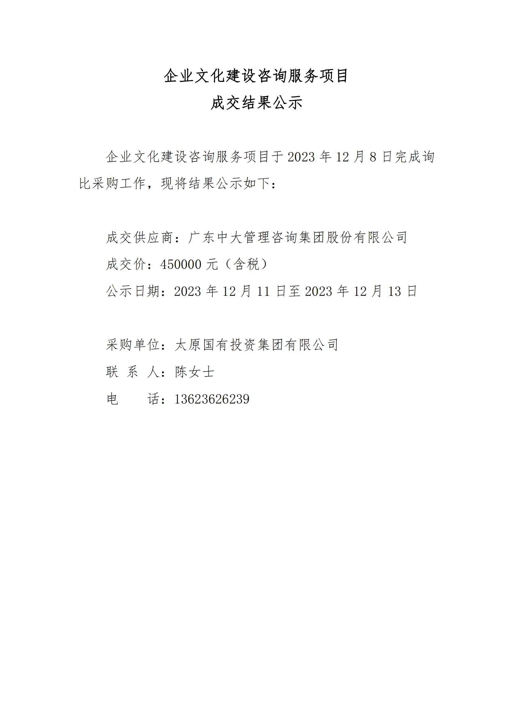 企業(yè)文化建設咨詢服務項目成交結(jié)果公示