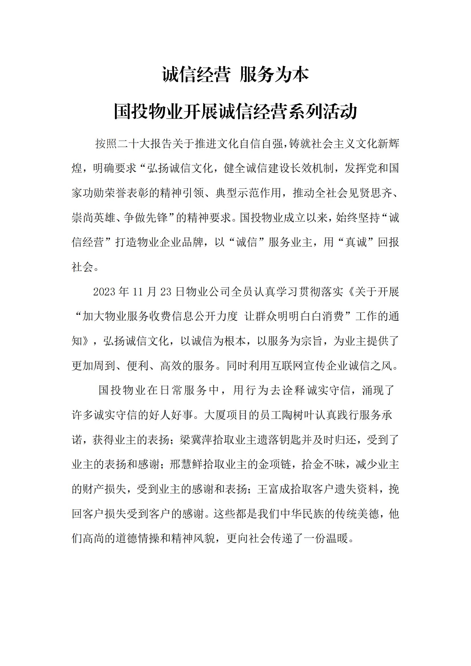 誠(chéng)信經(jīng)營(yíng) 服務(wù)為本——國(guó)投物業(yè)開(kāi)展誠(chéng)信經(jīng)營(yíng)系列活動(dòng)