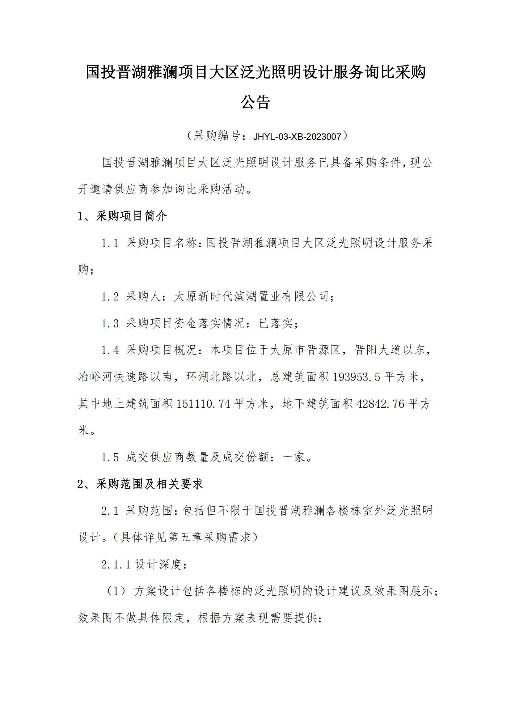 國(guó)投晉湖雅瀾項(xiàng)目大區(qū)泛光照明設(shè)計(jì)服務(wù)詢比采購(gòu)公告
