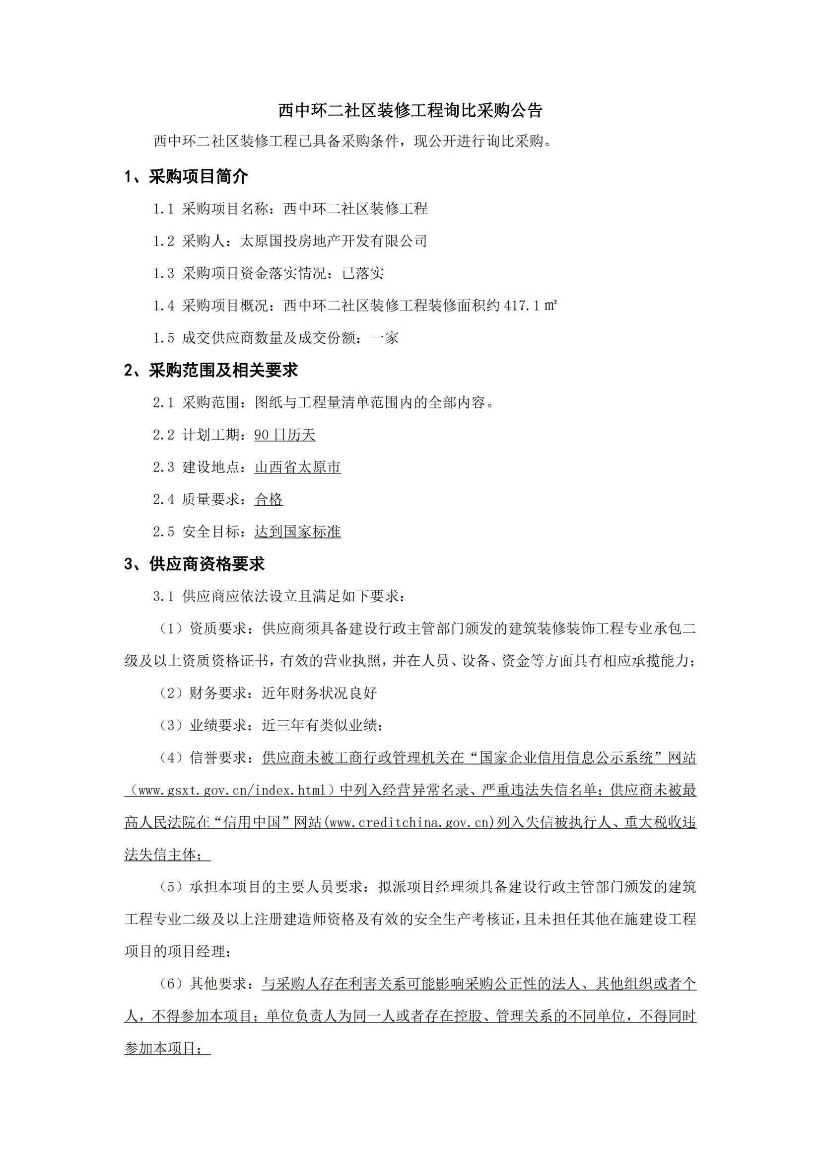 西中環(huán)二社區(qū)裝修工程詢比采購(gòu)公告