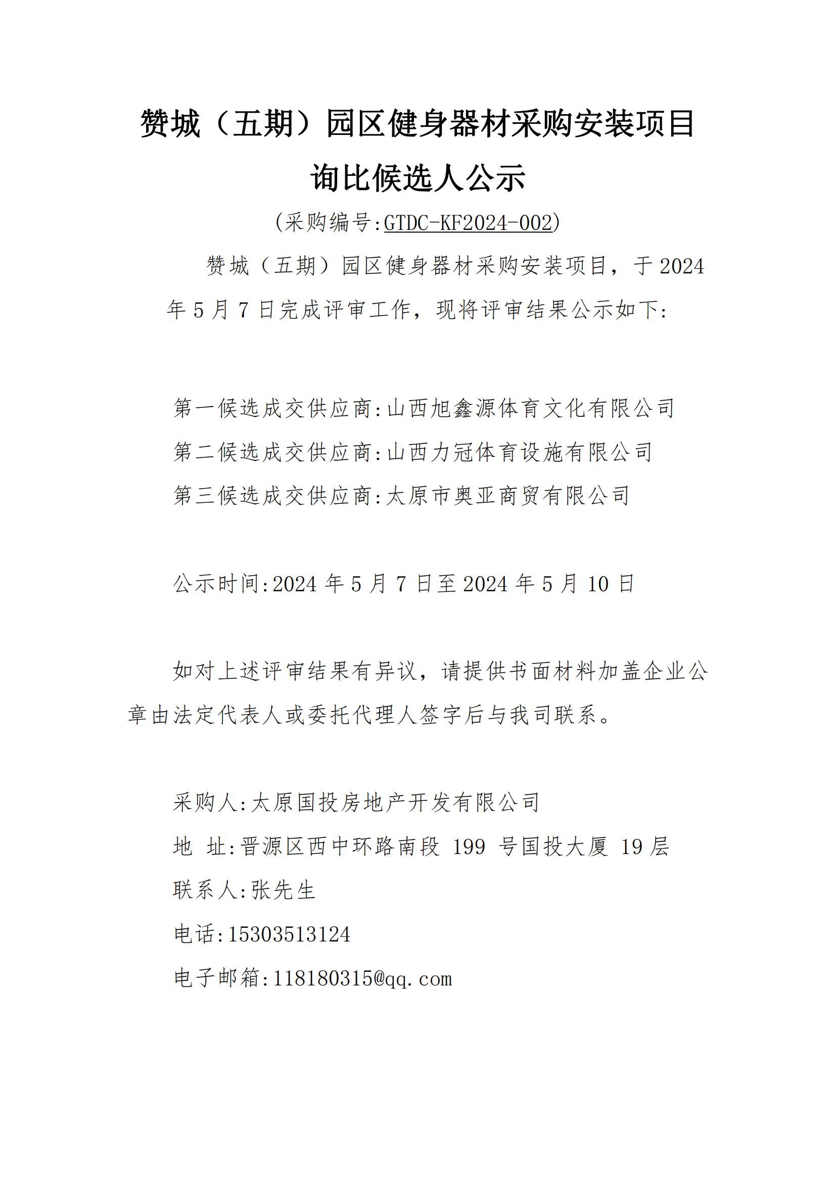 贊城(五期)園區(qū)健身器材采購(gòu)安裝 詢比采購(gòu)結(jié)果公示