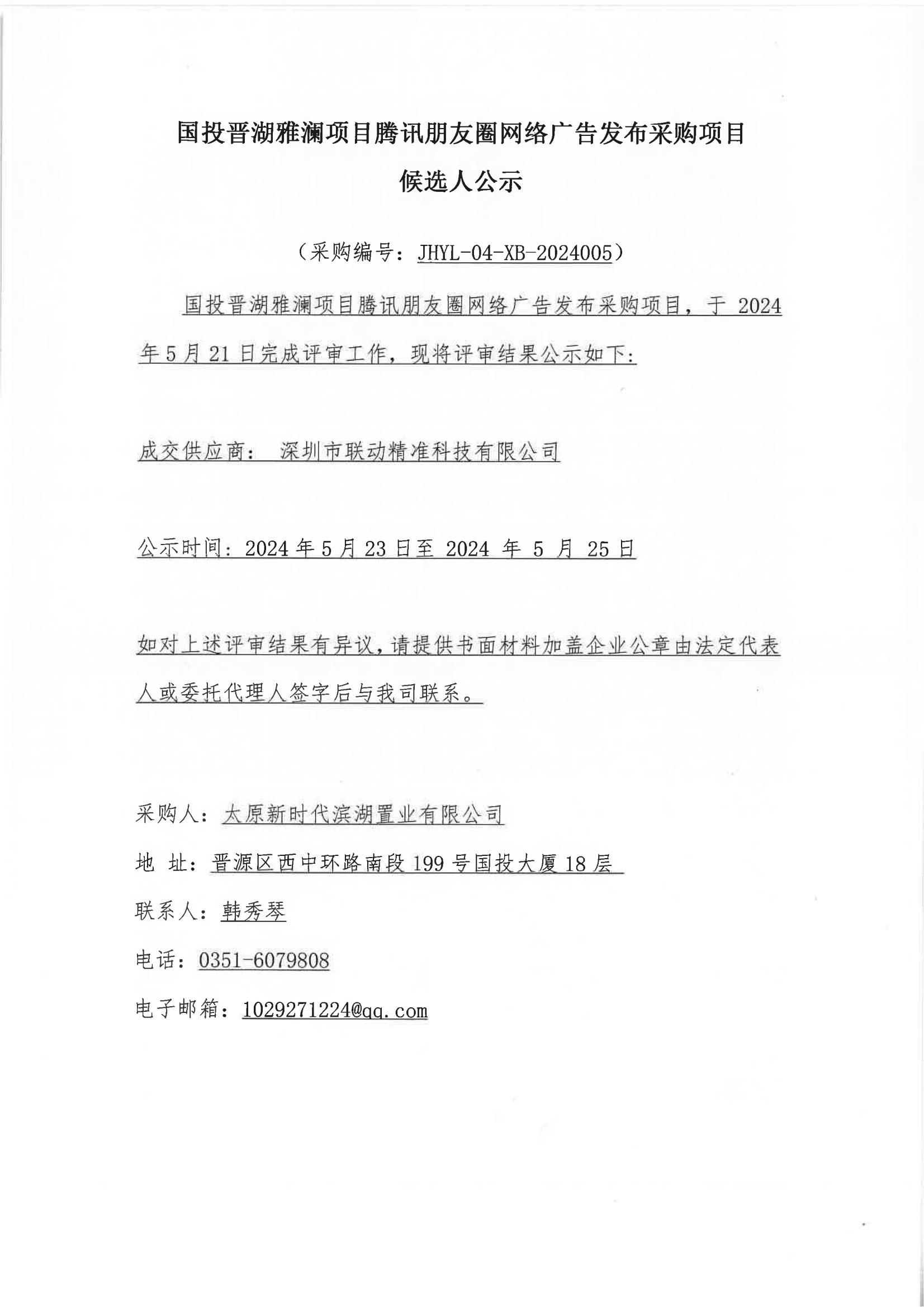 國投晉湖雅瀾項目騰訊朋友圈網(wǎng)絡(luò)廣告發(fā)布采購項目候選人公示