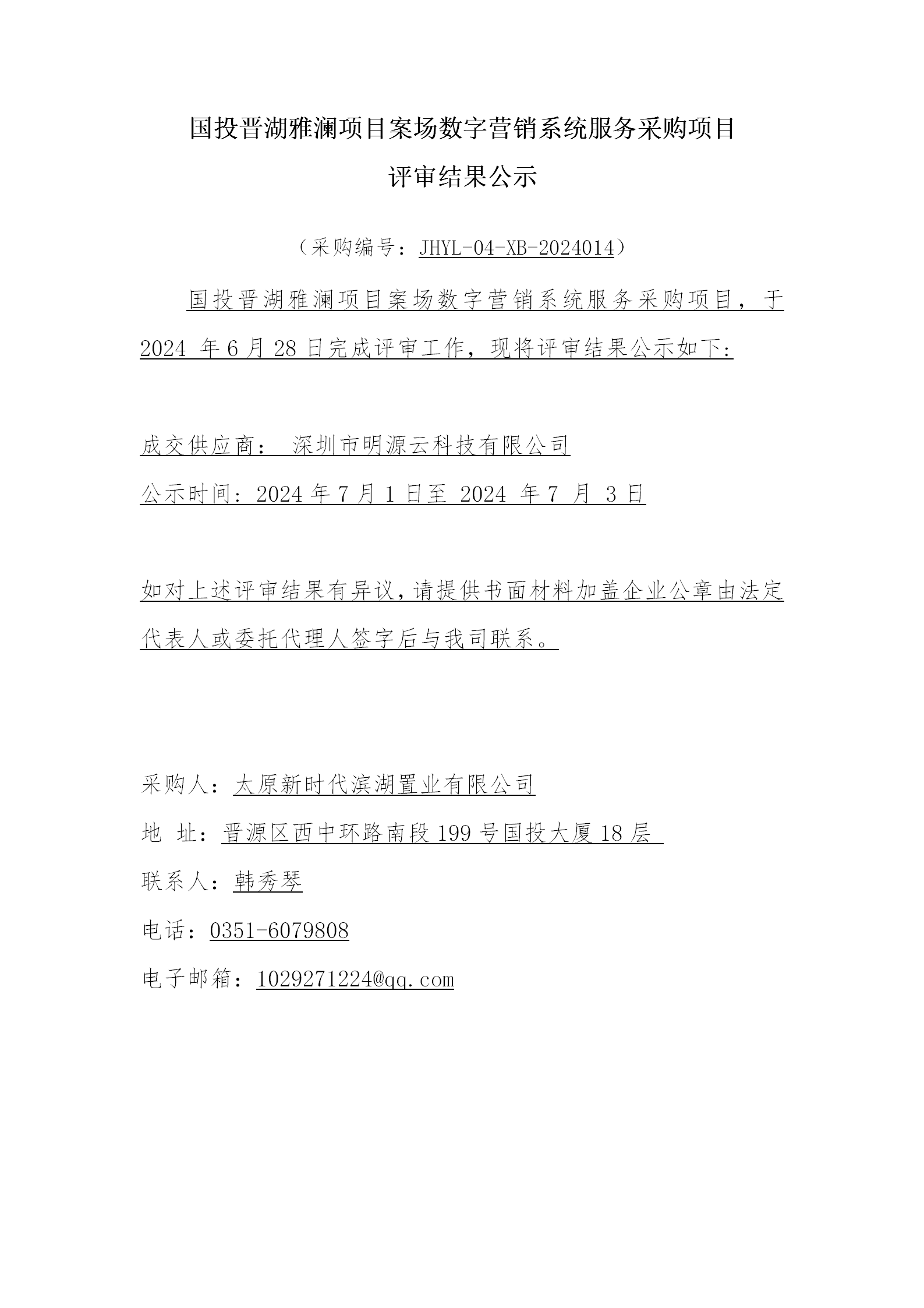 國投晉湖雅瀾項目案場數(shù)字營銷系統(tǒng)采購項目評審結(jié)果公示