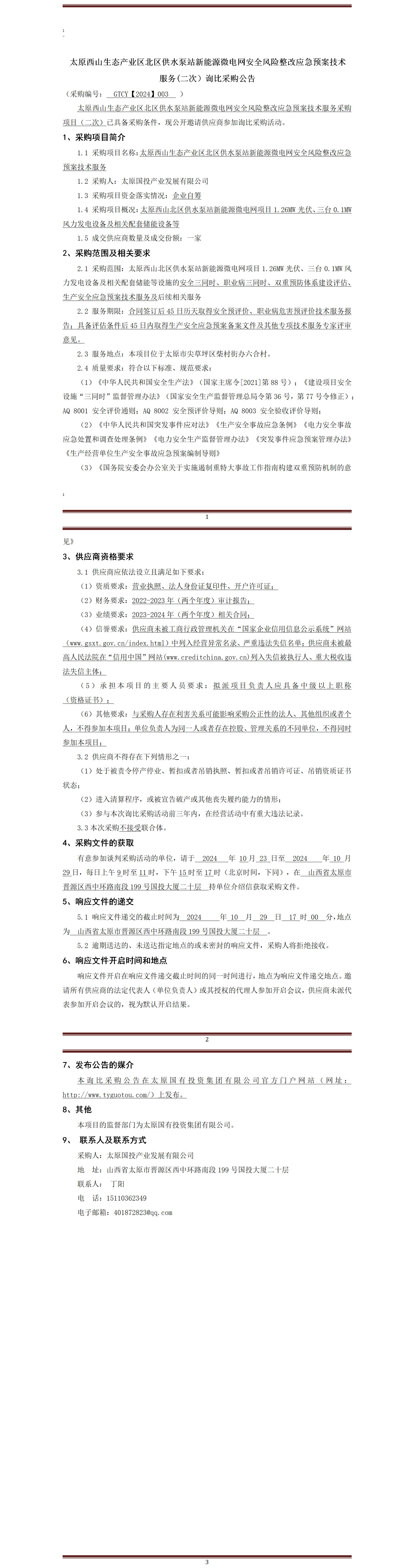 太原西山生態(tài)產(chǎn)業(yè)區(qū)北區(qū)供水泵站新能源微電網(wǎng)安全風(fēng)險(xiǎn)整改應(yīng)急預(yù)案技術(shù)服務(wù)(二次)詢(xún)比采購(gòu)公告
