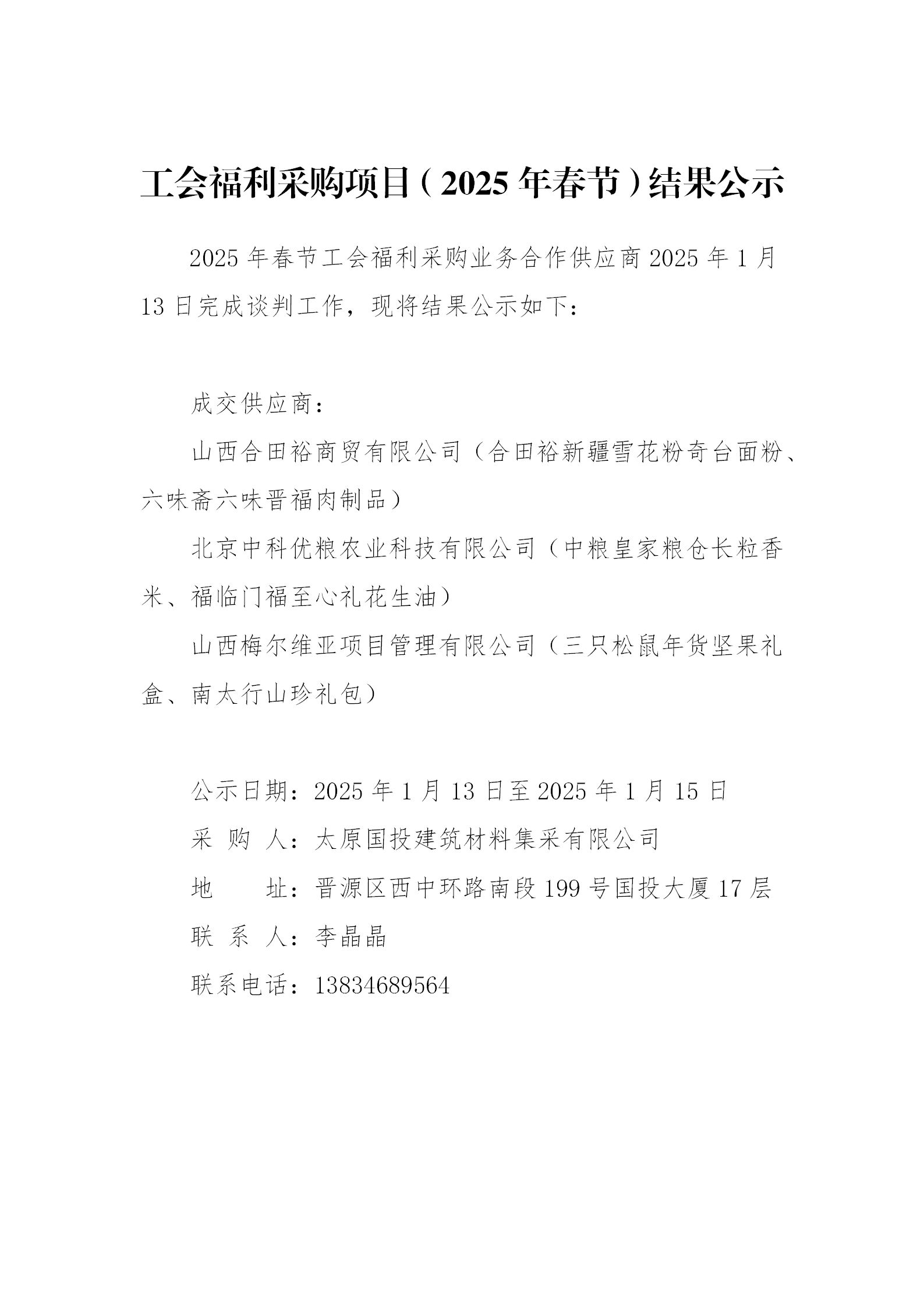 工會(huì)福利采購(gòu)項(xiàng)目(2025年春節(jié))結(jié)果公示