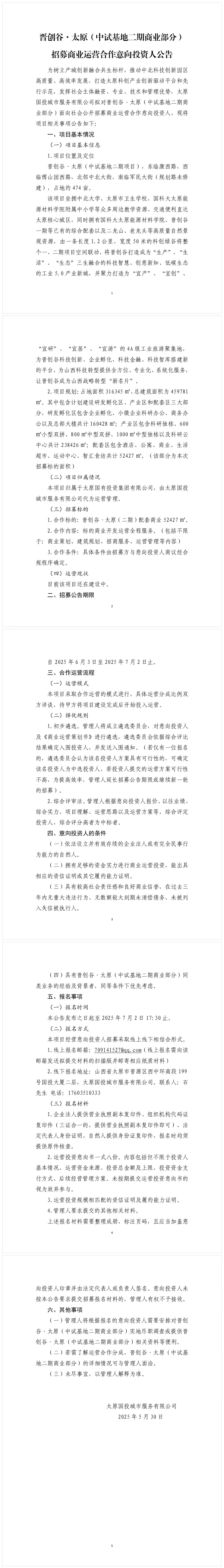 晉創(chuàng)谷·太原(中試基地二期商業(yè)部分) 招募商業(yè)運營合作意向投資人公告