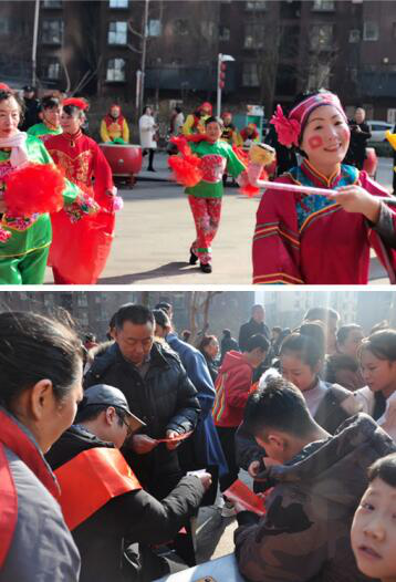 活動(dòng)現(xiàn)場(chǎng)人流如織,鑼鼓喧天。由社區(qū)居民自發(fā)組成的3支社火巡游展演隊(duì)爭(zhēng)奇斗艷,秧歌,劃旱船等具有地方特色的節(jié)目依次呈現(xiàn)。走進(jìn)燈謎區(qū),上百張謎面被紅線穿著懸在燈籠下面。在場(chǎng)的觀眾興致勃勃,踴躍參加,各顯其才在謎語前駐足思考,共同參與這場(chǎng)節(jié)日里的頭腦風(fēng)暴。不一會(huì)兒大半燈謎都被“攻克”。物業(yè)志愿者為大家緊張有序兌換禮品。一張張紅艷艷的謎面變成了居民手中豐富多樣的智慧結(jié)晶。