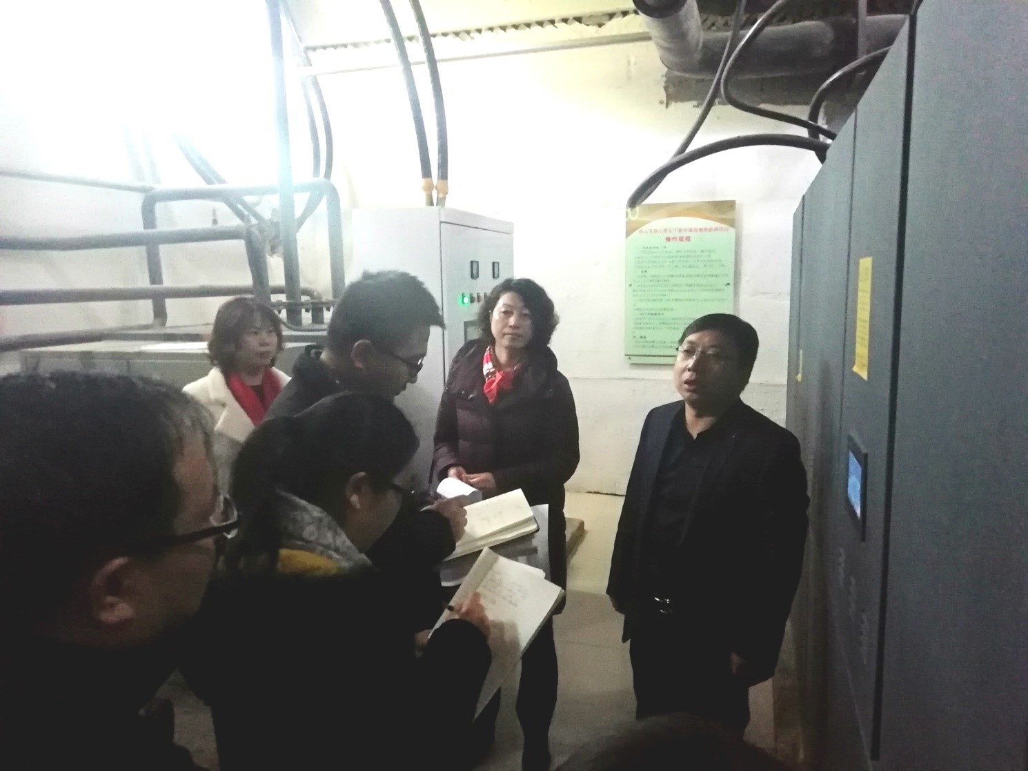 隨后,調研組參觀了能源站設備間、一號井井室及三號井井場,詳細詢問了供熱運營、地熱井施工情況,并與我公司人員充分交流和討論了中深層無干擾地熱的施工工藝、工程難度及項目進行中存在的問題等。