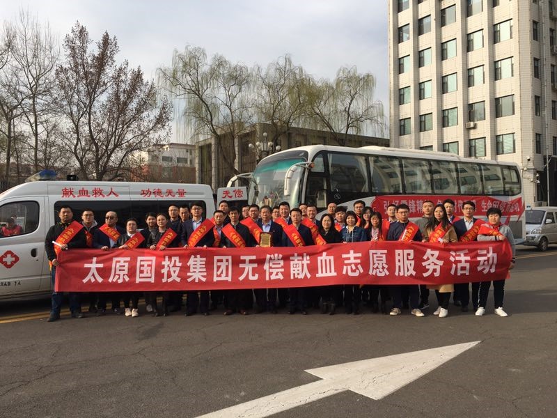 2019年3月19日上午,太原國投集團(tuán)與太原市人民政府辦公廳、市外僑辦等56家單位在太原市人民政府院內(nèi)聯(lián)合組織了“熱血助力龍城 企業(yè)勇于擔(dān)當(dāng)”無償獻(xiàn)血活動(dòng)。太原國投集團(tuán)董事長(zhǎng)蘭衛(wèi)軍、黨委書記馮澤亭等40名領(lǐng)導(dǎo)員工參加了此次活動(dòng),28人通過了血液檢驗(yàn)完成獻(xiàn)血,獻(xiàn)血總量約達(dá)11200毫升。