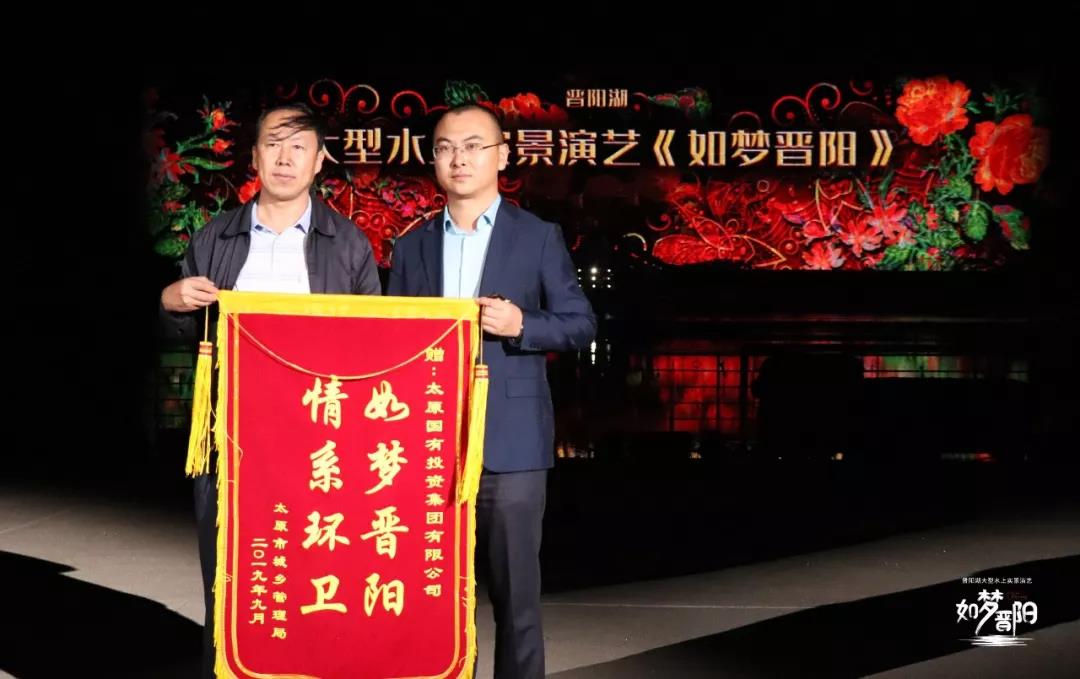 隨后,太原市城鄉(xiāng)管理局副局長(zhǎng)時(shí)中瑛為太原國(guó)投商業(yè)運(yùn)營(yíng)管理有限公司總經(jīng)理張耀偉、北京金藝世紀(jì)文化傳媒有限公司山西分公司副總經(jīng)理徐婧贈(zèng)送了“如夢(mèng)晉陽(yáng)·情系環(huán)衛(wèi)”的錦旗。