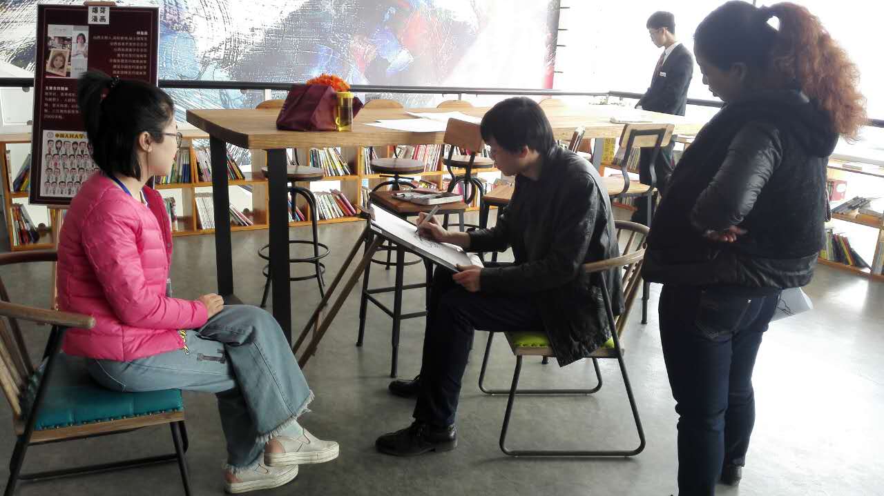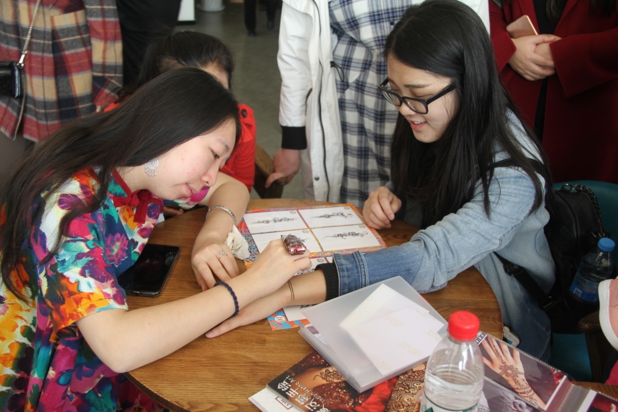 二層文創(chuàng)市集的體驗活動吸引了眾多嘉賓的參與??蛻魧υ醋杂《鹊暮D然ǔ錆M了好奇,排隊讓手繪師為自己繪上來自異域的祝福。